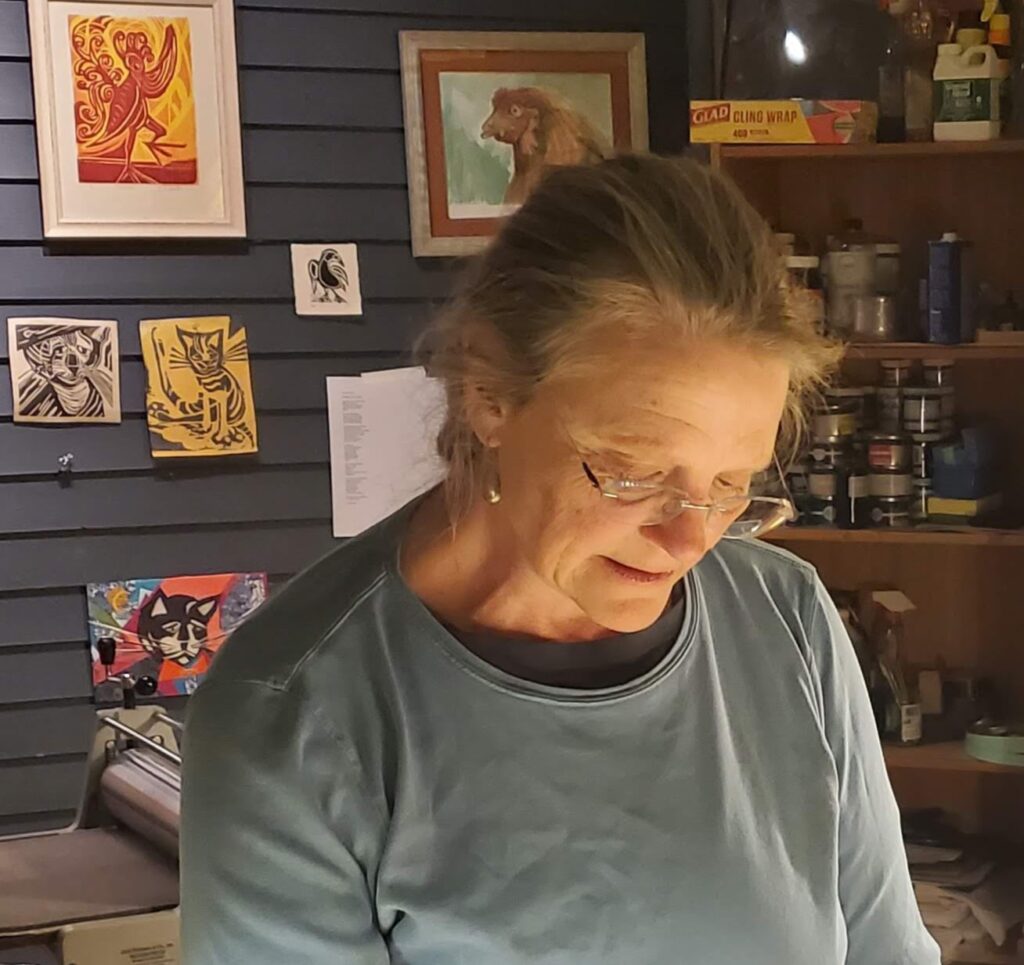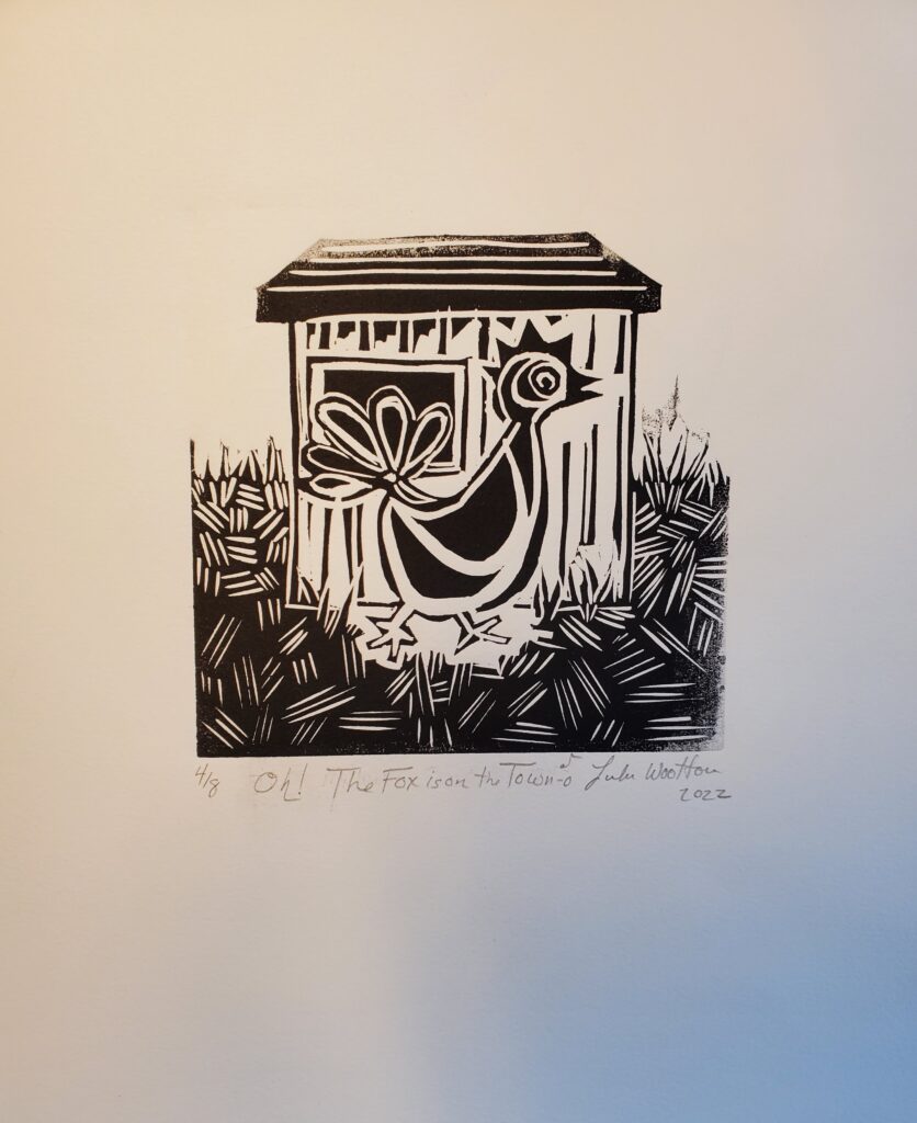 Lulu Wootton will be the first artist to exhibit in the Hardwick Town House in over 20 years. We are so thrilled to bring this visual art tradition back to the space in collaboration with the Craftsbury Chamber Players. Lulu’s striking prints will be on display in the lobby and on the back wall of the theater during the first 3 CCP Concerts on Thursday evenings on July 10th, 17th, and 24th. Additionally, the gallery space will be open on Wednesdays and Saturdays from 2-6 PM July 12 – 23.