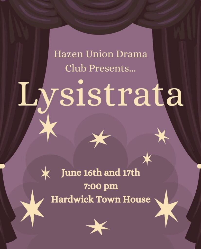 Join Hazen Union Drama Club for an evening of ancient Greek comedy with a modern, musical twist. Aristophanes’ Lysistrata tells the story of a woman on a mission to end the Peloponnesian War between Greek city-states by taking an unconventional approach to diplomacy. The protagonist, Lysistrata, organizes a coalition of women who unite to collectively withhold affection from all the men of the land! 😲💃 It’s clever, funny, and just a little cheeky!