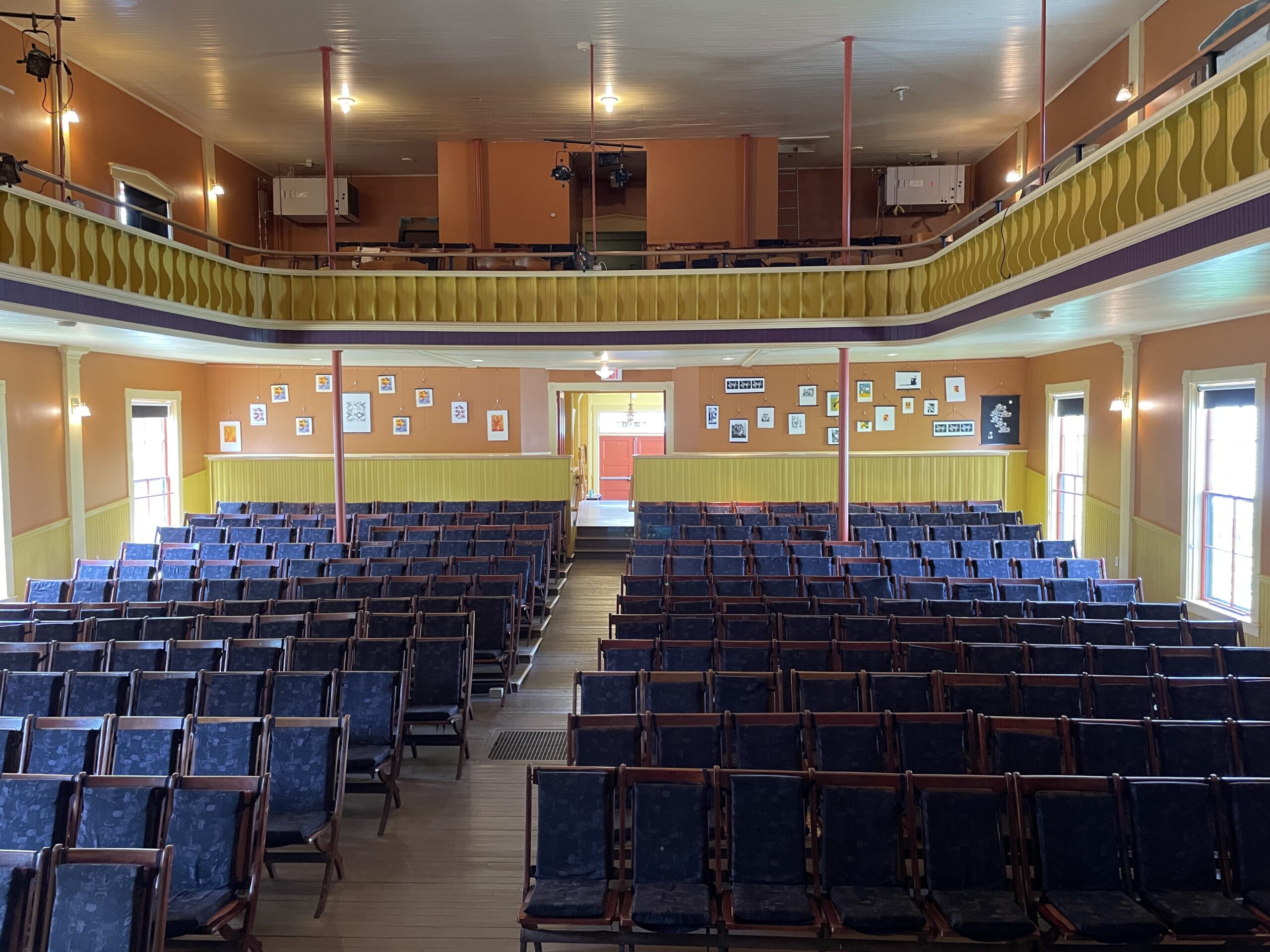 Local artists exhibit their works in the lobby and rear wall of the theater throughout July and August.